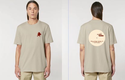 Camiseta del primer disco de Moner con la cebolla en el pecho y el disco con las canciones detrás.